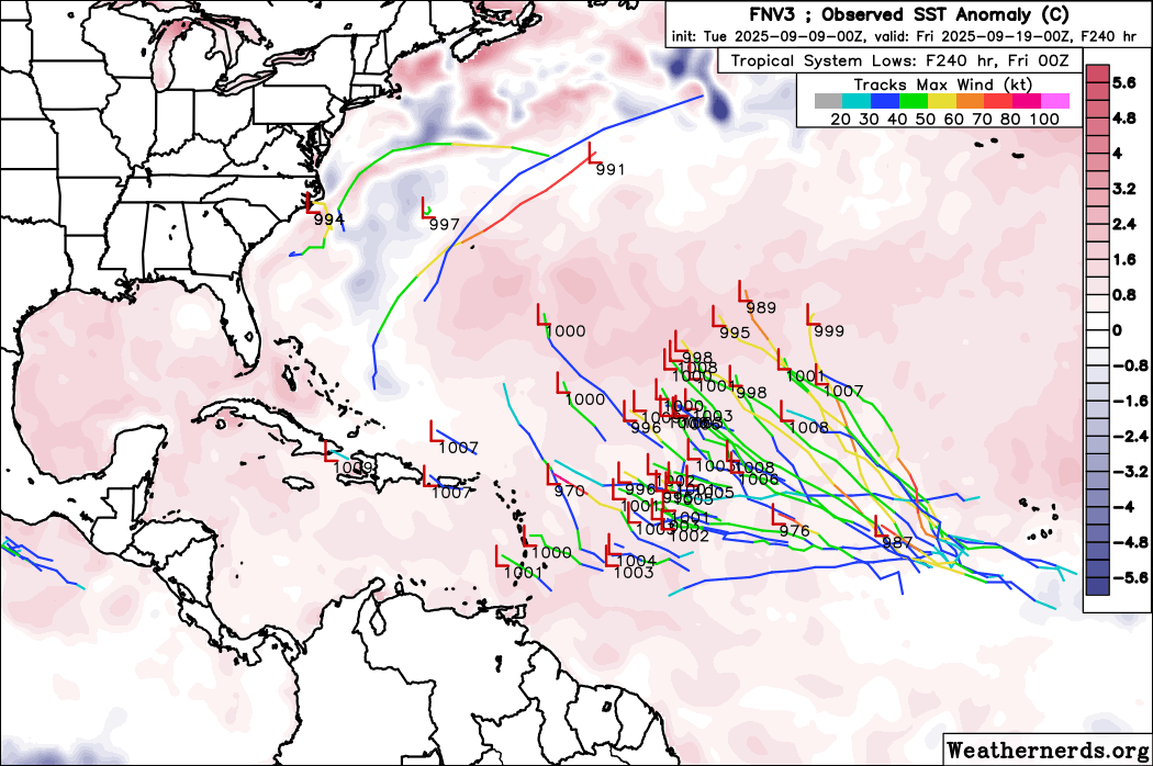 This system is still more than a week out and the development signal isn’t especially strong at this stage, but we’ll follow the trends in the days ahead.