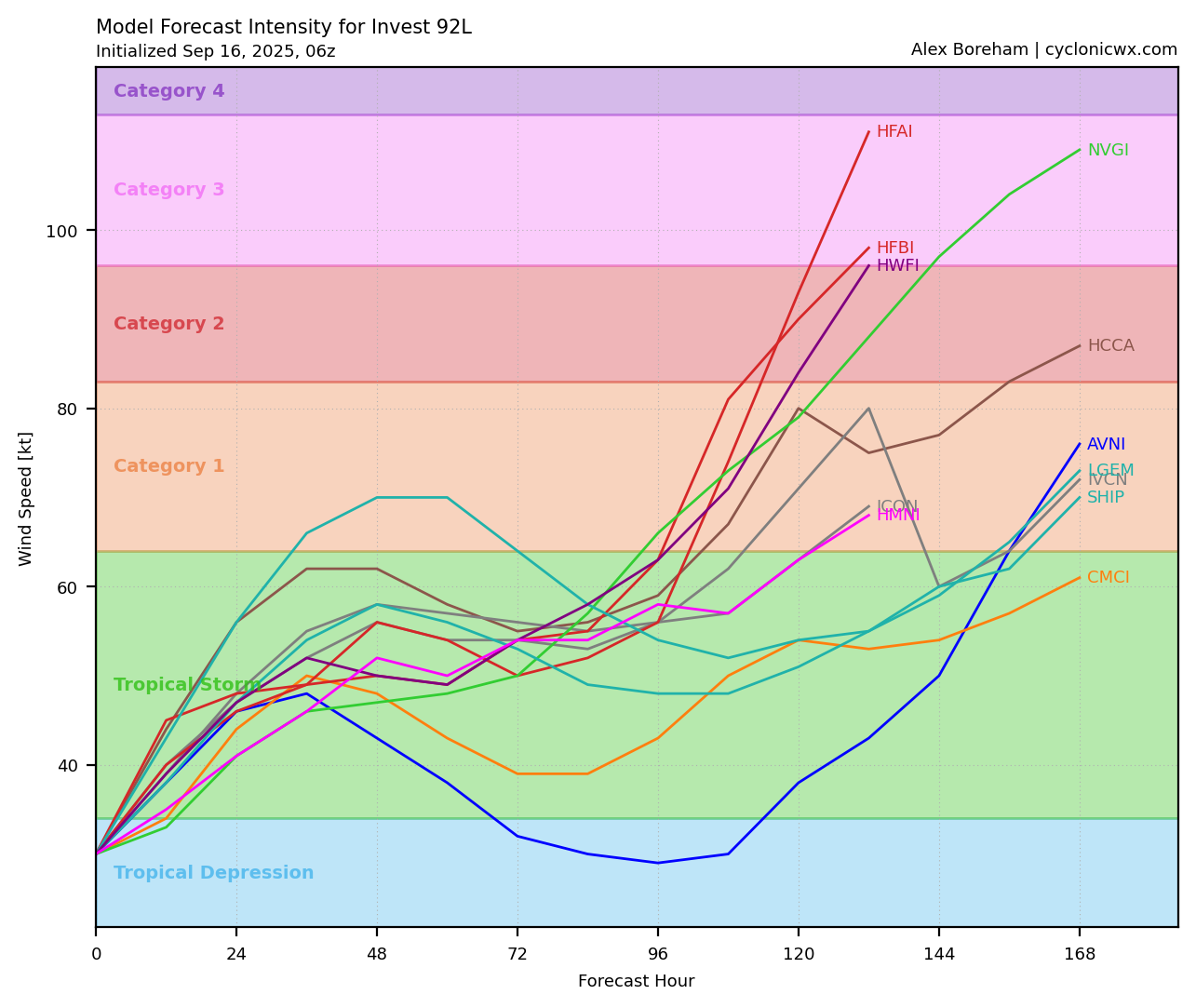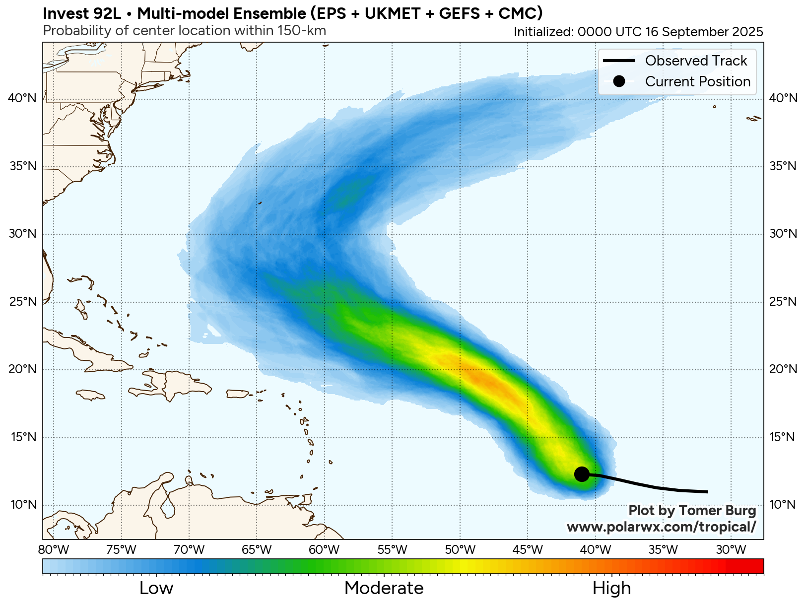 Of course, Bermuda is often in the crosshairs of hurricanes throughout September and will want to continue to check back on the trends. Most intensity models are bullish on 92L’s future, strengthening it into a hurricane as it rounds the subtropical high next week.