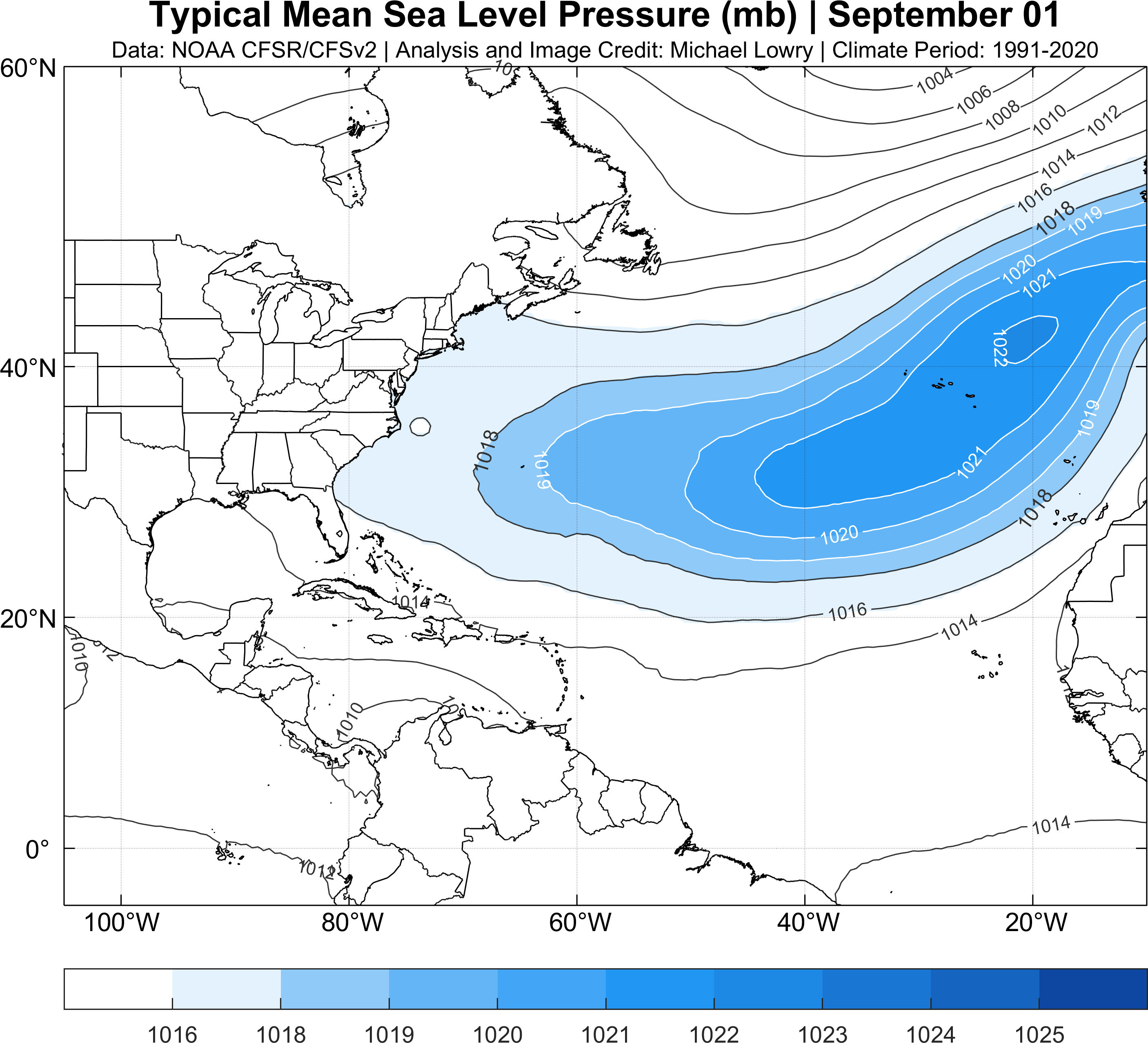 The upshot of this late start is the Bermuda/Azores high, which can steer would-be hurricanes – the famed Cabo Verde hurricanes – toward the U.S., is in a weaker place than it is at the start of the month.