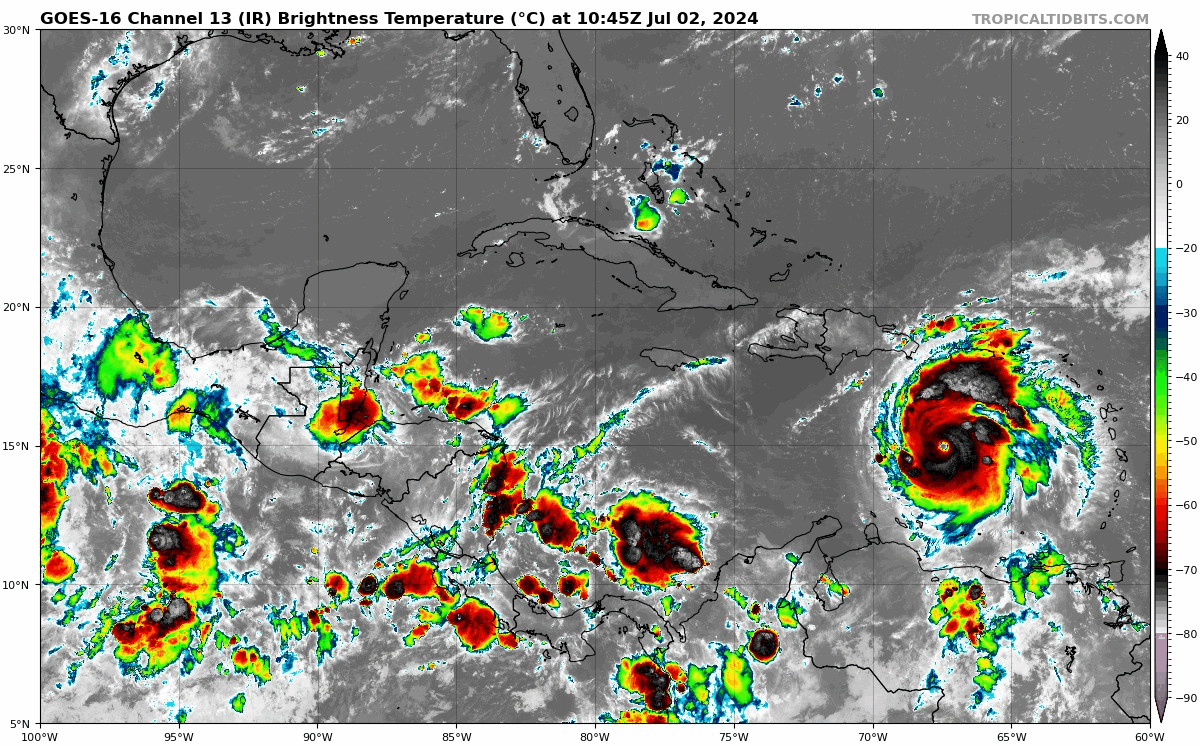 After striking the small island of Carriacou at the entrance of the eastern Caribbean as a 150 mph Category 4 hurricane on Monday, Beryl continued to intensify through the overnight hours, becoming a 165 mph Category 5 hurricane by early Tuesday.