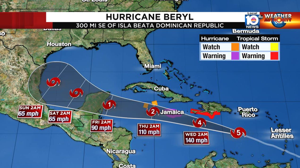 Hurricane warning in effect for Jamaica as Beryl could threaten as a major hurricane by Wednesday