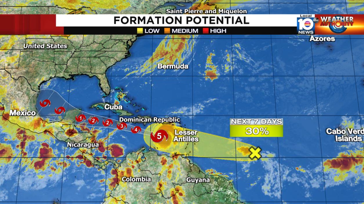 On Tuesday, the National Hurricane Center dropped its development odds to low over the next week. However, those areas affected by Beryl will want to monitor its progress as it will bring additional heavy rains to the Windward Islands on Wednesday regardless of development.