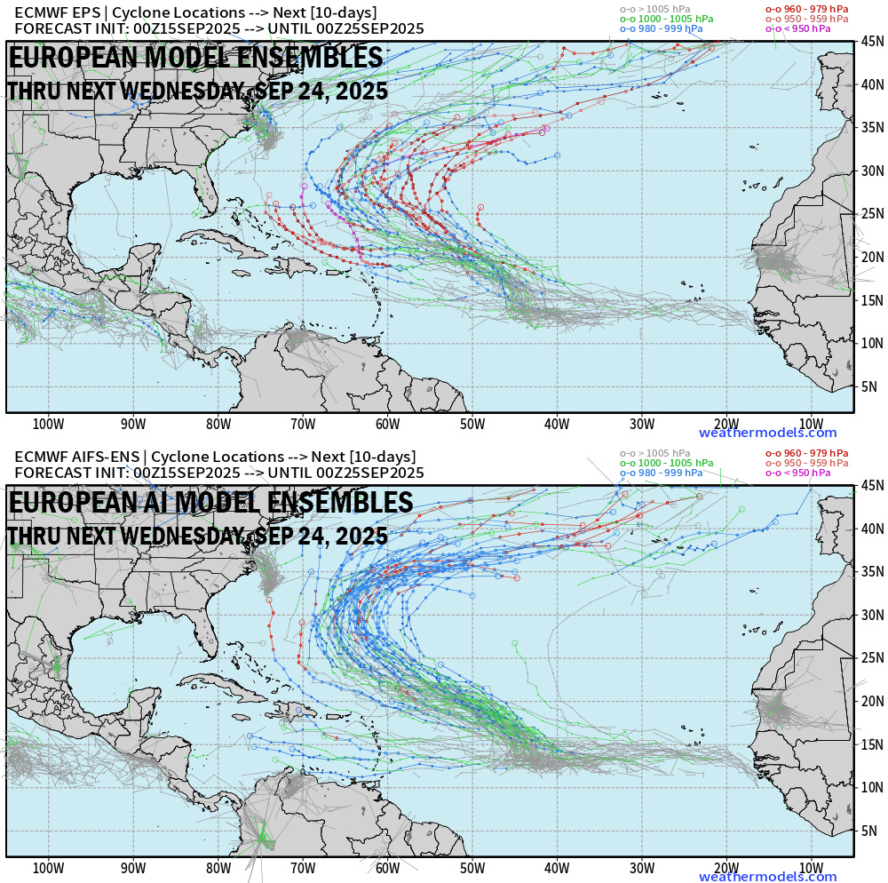 Of course, we need only go back to 2024 to find a heavily backloaded hurricane season, with our worst and most destructive hurricanes hitting in late September and October after another unusual mid-season lull. So while we should enjoy the peak-season drought, we also shouldn’t assume it’ll stick around. If the Atlantic’s struggles are related to the issues we’ve covered extensively in past newsletters, the shift in preferred formation zones closer to the U.S. in October could give it renewed life.
