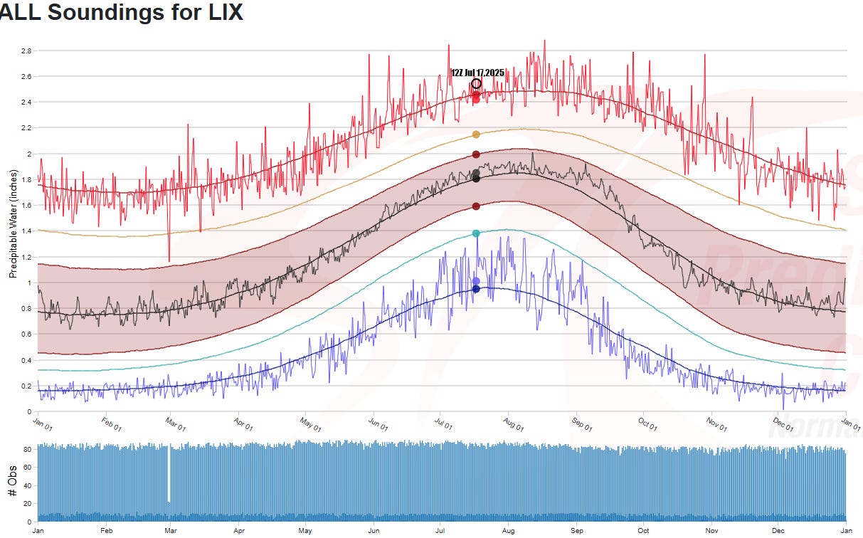 Nevertheless, the plume of tropical air will push available atmospheric moisture to the upper tier, not just for July but for any time of year.