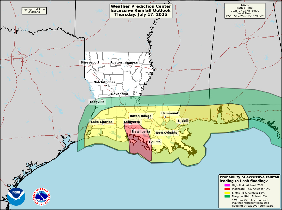 Invest 93L slides into South Louisiana today, bringing periods of heavy rainfall and flash flooding through tomorrow