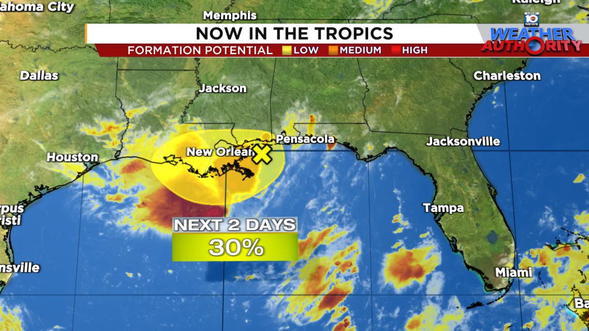 The system largely remained over land as it scraped the coastline from Florida’s panhandle westward on Wednesday, preventing it from turning into anything more than a disorganized tropical rainmaker. Its final stop in Louisiana today and tomorrow will seal its fate, but even as development odds tumble, it will continue to bring the very real threat of heavy rainfall and periods of flash flooding to cap the workweek.