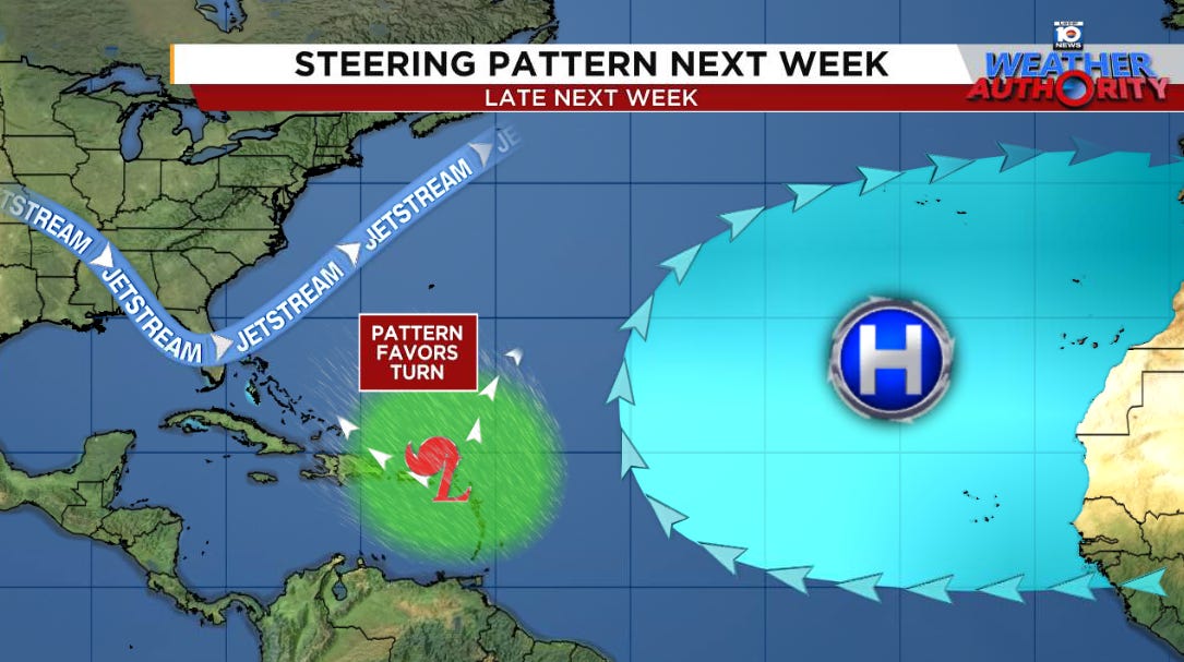 Although it’s still about a week out from reaching the area around the eastern Caribbean, including the islands that border it, interests in these areas – including the Lesser Antilles, Puerto Rico, and the U.S. Virgin Islands – should monitor the forecast and progress of 91L this weekend into early next week.