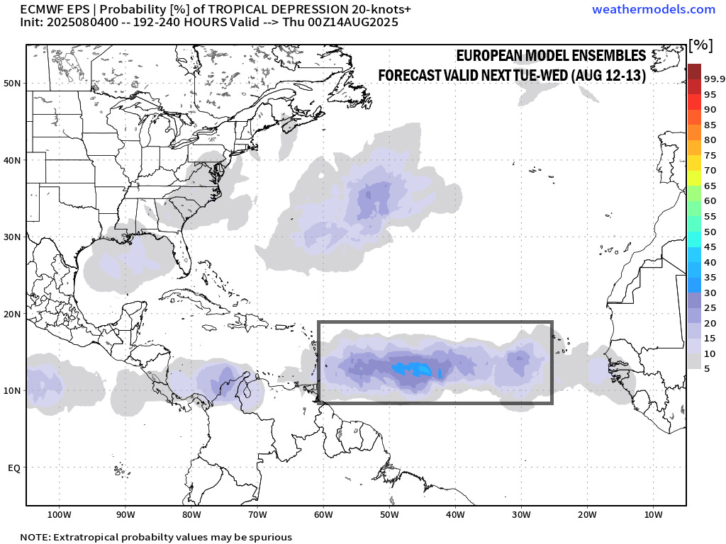 We’ve been previewing a busy start to August in this newsletter for almost a month, describing the behind-the-scenes developments signaling an uptick in Atlantic activity, and, two weeks ago, advertising an August 3rd wake-up call for the basin. Judging by today’s map, our outlook met the mark, with the Atlantic springing to life over the weekend.