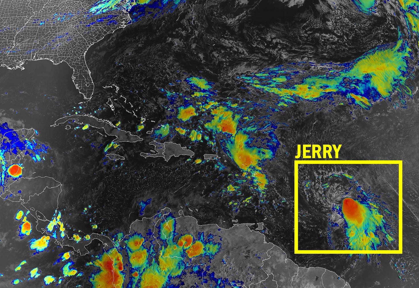 Jerry Forms but Slow to Strengthen, Tropical Storm Watches Issued for the Northern Leeward Islands