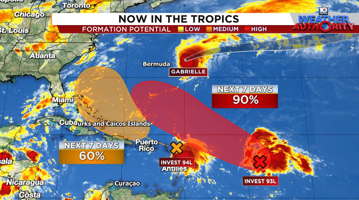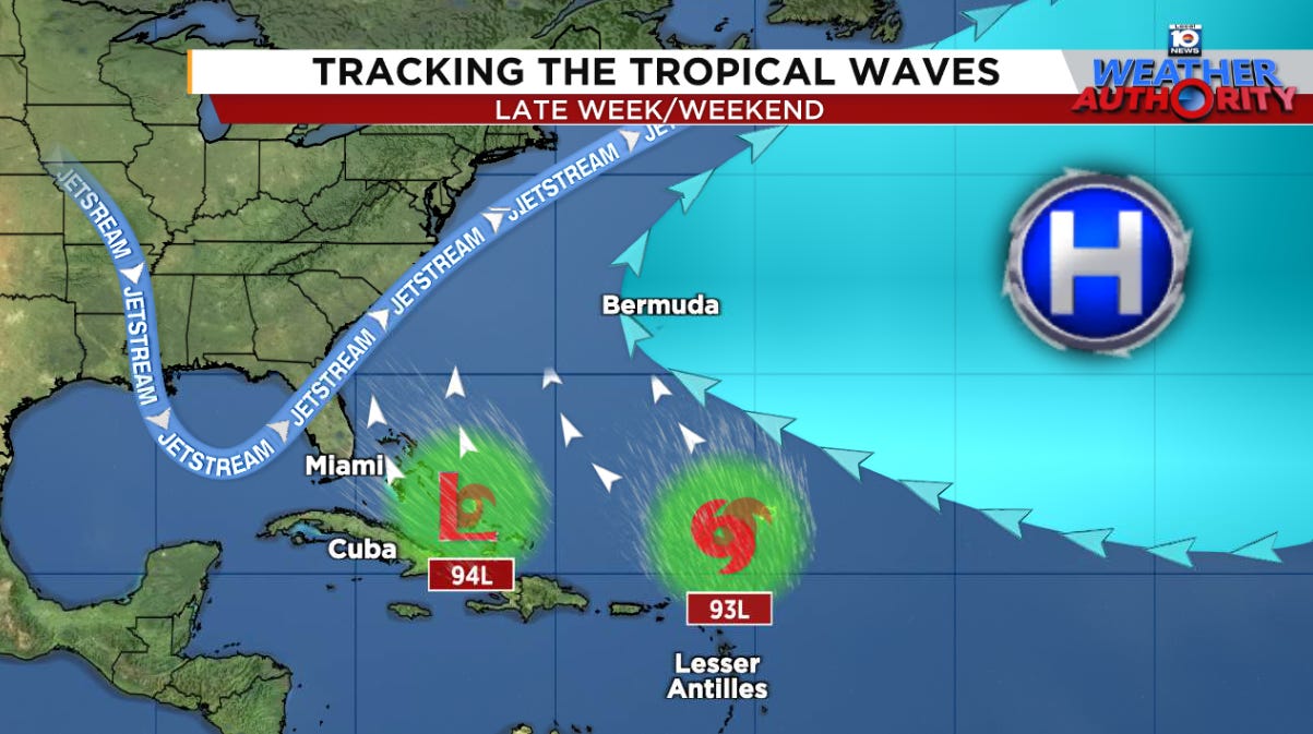 Newly designated Invests 93L and 94L could develop as they track deeper into the western Atlantic this week