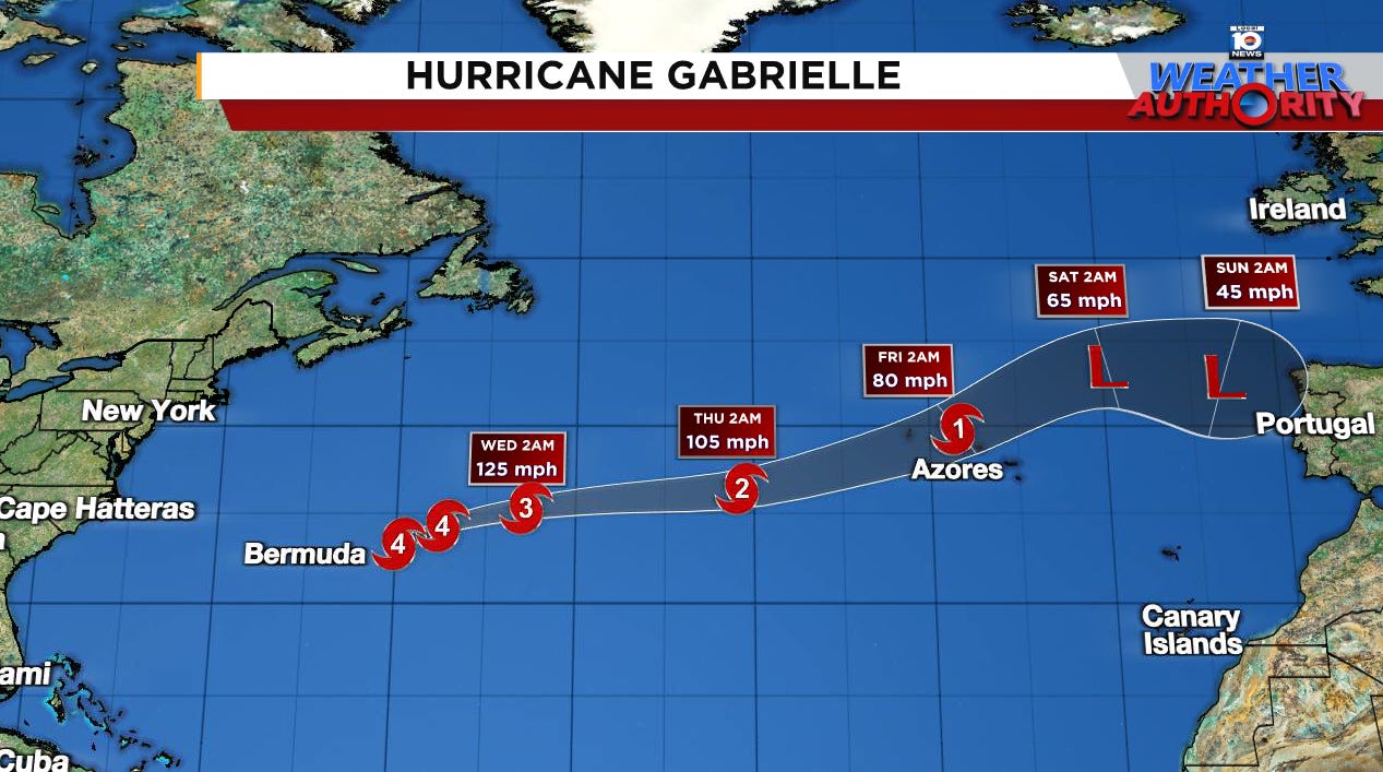 While Gabrielle could bring blustery conditions to the Azores by late Thursday and early Friday, it’s too soon to know whether it will pass over or just north of the Portuguese islands. Models for now suggest a more direct threat to the less populated northern islands like Flores Island and Corvo Island for late week.