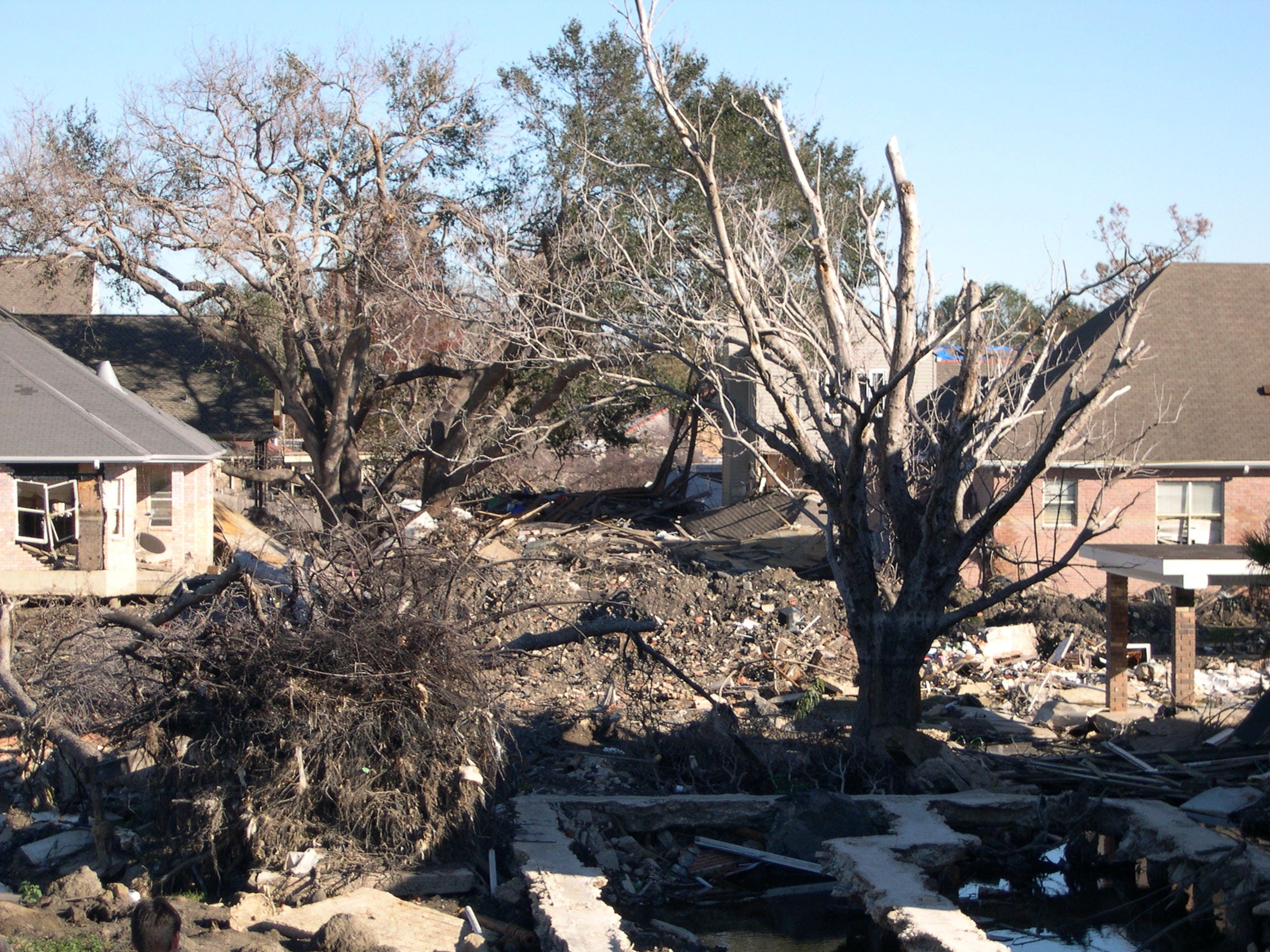 But nothing could’ve prepared me for crossing the 17th Street Canal from west to east – to the New Orleans side where the levees didn’t hold. Everything I knew was dead. The grass was dead. The trees were dead. The air was still, punctured only by a distant emergency siren or a passing helicopter, but devoid of life.