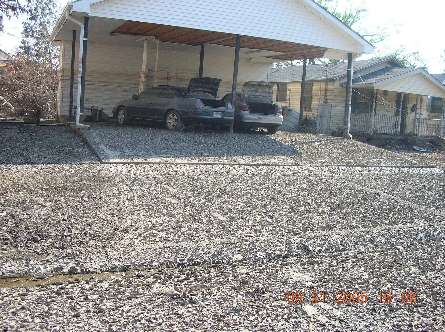 It was the difference between Oz and Kansas – one of America’s most vibrant, colorful cities flattened into a sepia-toned, lifeless landscape. The ground all over the city resembled the skin of a South Louisiana alligator, hardened and scaly from layers of now-dried mud, bringing a distinctive crunch with every step. Homes were stacked against other homes and houses peeled from concrete slabs, left orphaned in the middle of city streets.