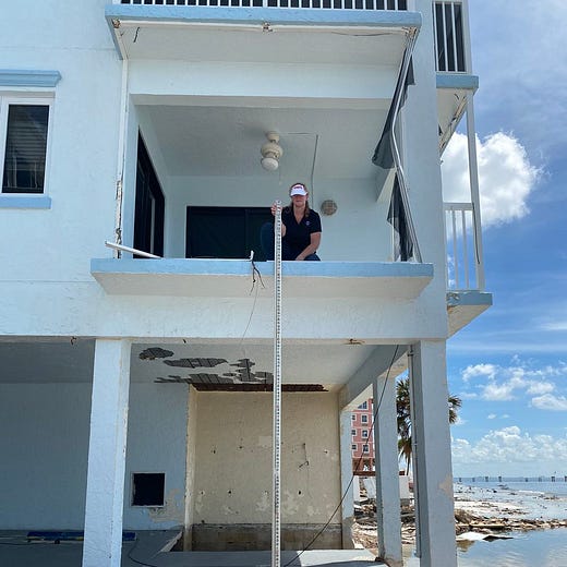But just how high the catastrophic storm surge reached takes a little time to unpack. We knew almost instantly from the terrifying videos shared on social media from people trapped in their homes that the coastal surge made it to the second floor of some places. Given a story is about 10 feet high, in the absence of data, it’s safe to assume the storm surge reached at least 10 feet above ground in spots.